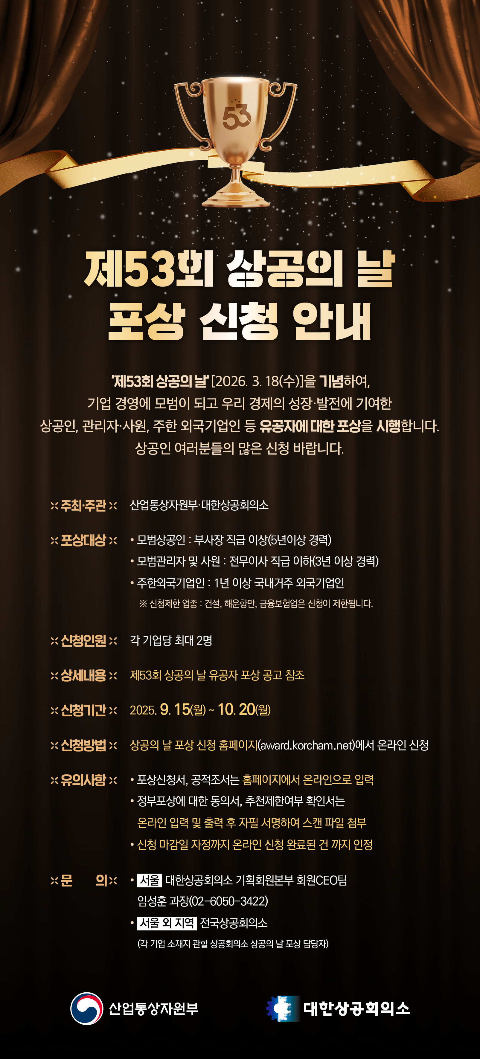 ‒ | 제53회 상공의 날 포상 신청 안내 |