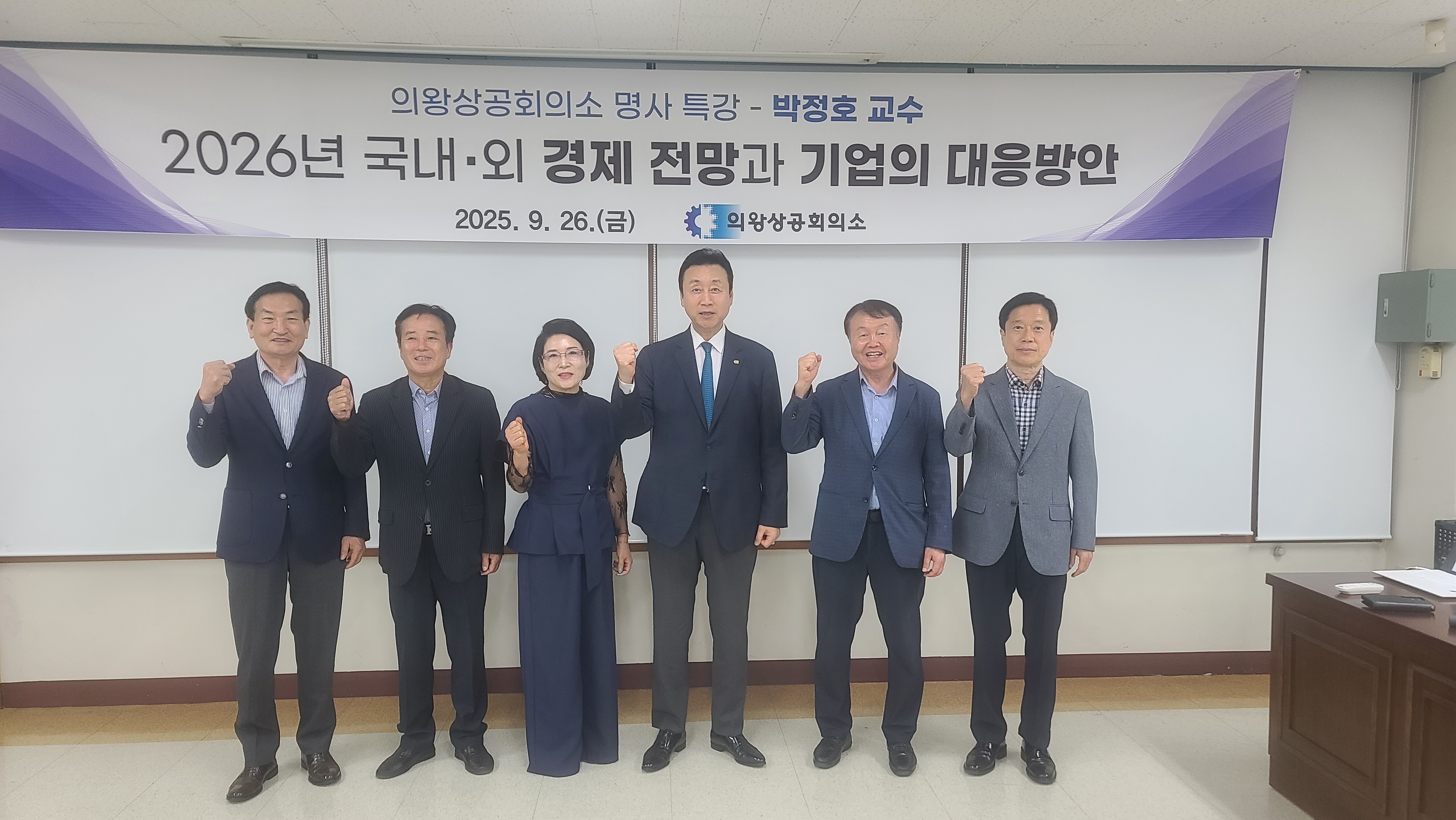 의왕상공회의소(회장 안효철)는 9월 26일(금) 17시에 대회의실에서 박정호 특임교수(명지대학교 산업대학원)를 초빙하여 ■2026년 국내외 경제전망과 기업의 대응방안■ 이라는 주제로 특강을 진행하였다.